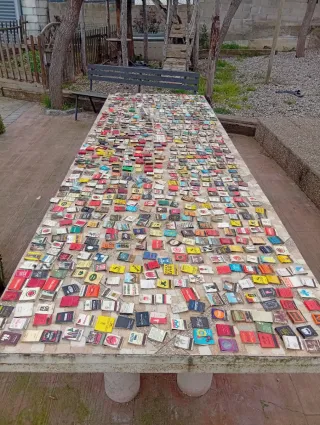 Più di 450 pezzi. Collezione di scatole di fiammiferi antiche e varie, con design e marchi di diverse epoche. Include scatole di marchi come Melia Hoteles, Vota UCD, La Gaditana, Radio TV, Empire State Building e altre. Design grafici diversi e colorati. Ideale per collezionisti di oggetti vintage e memorabilia.