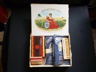 Scatole di sigari antiche, ciascuna con un design diverso. Sono un interessante oggetto da collezione. - Scatola 1: Bar Ristorante MARISQUERIA SERANTES, Bilbao. - Scatola 2: CIGA HOTELS. - Scatola 3: Restaurant can gatell, Rodolfo, CAMBRILS PORT. - Scatola 4: airó. - Scatola 5: LLICORELLA. - Scatola 6: airó. - Scatola 7: CIGA HOTELS. - Scatola 8: RESTAURANT CAN PONS, MIAMI, SAN CARLES DE LA RAPITA. - Scatola 9: Scatola nera. - Scatola 10: Scatola bianca con logo. -CIASCUNA x 1€