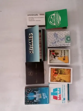 Set di 14 scatole di fiammiferi antiche con design vari. Scatola di fiammiferi Los Pájaros. Scatola di fiammiferi Winns. Scatola di fiammiferi Fortuna. Scatola di fiammiferi Davidoff. Scatola di fiammiferi Golden American Classic (2 unità). In buono stato, prezzo 12 euro unità. Dimensioni 7,5x5 cm. Scatola di fiammiferi Luna. Scatola di fiammiferi Venere. Scatola di fiammiferi con figura femminile e fiori. Scatola di fiammiferi con figura femminile e paesaggio. Scatola di fiammiferi con figura femminile e mazzo di fiori.