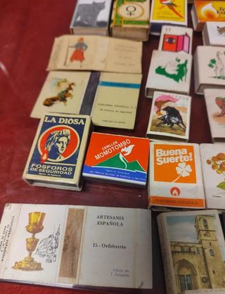 Lotto di 50 vecchie scatole di fiammiferi di diverse tematiche. Tutte sono aperte, e potrebbero esserci ripetizioni e presentare usura e/o danni dovuti al tempo, vedere le foto. Stato come si vede. Si vendono insieme. Spedizione tramite Wallapop.