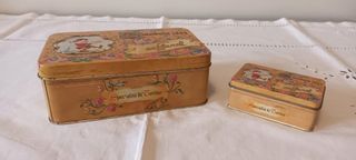 Set di due lattine di latta vintage con design di Laxen Busto. Design retrò con testo in spagnolo. Ideale per collezionisti o decorazione.