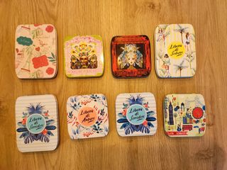 Bellissimo lotto di scatole di latta vintage, perfette per collezionisti o amanti del retrò. Sono in ottime condizioni, colorate e decorate con motivi diversi. - Include 240 scatole di latta di varie dimensioni e forme. - Motivi floreali, paesaggi e immagini varie. - Ideali per collezionisti o per un tocco vintage in casa.