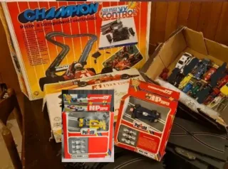 Polistil Policar Lotto 2 Piste elettriche Slot Car 1:32 + 2 SHP + 13 Carene 1:32 Lista piste e componenti piste : N° 1 - pista champion N° 1 - pista polistil N° binari tradizionali (curve e rettilenei in stato medio / buono. ) a riempire le scatole N° 1 - trasformatore N° 2 - telecomandi acceleratore Lista Vetture Confezionate Shp : N° 1 - Wolf WR1 (SHP) Serie:Polistil Champion 175 ATS HS1 Ford (SHP) Serie:Polistil Champion 175 Lista carene : N° 13 carene varie polistil / policar N° tyrel per parri di ricambio Binari extra : N° - 12 rettilinei N° 19 - curve N° 1 - pezzo a x N° 1 - pezzo collegamento alimentatore (questi compo