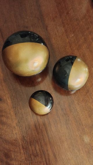 coppia in due misure di scatole di metallo battuto a mano risalenti al secolo scorso.Entrambe rappresentano il medesimo soggetto floreale in stile liberty. Sull'articolo vige la regola "visto e piaciuto" della compravendite tra privati con l'esclusione della garanzia ai sensi dell'art. 1490 comma 2 c.c. e art. 1491 (Codice Civile).