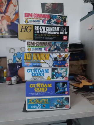 Lotto di 6 scatole di modellismo Gundam. - Gundam GM-COMMAND (2 scatole) - Gundam RX-178 Gundam Mk-II - Gundam Neo Gundam - Gundam 0083 (2 scatole) - Gundam F91