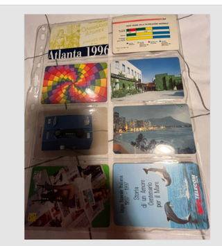 Collezione di schede telefoniche in condizioni pari al nuovo. - Scheda Atlanta 1996. - Scheda SIP. - Scheda Mantegazza. - Scheda Lega Navale Italiana 1897-1997. - Scheda Telecom Italia.