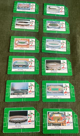Collezione di schede telefoniche SIP dedicate agli stadi italiani. - Serie Stadi d'Italia - Ogni scheda raffigura uno stadio diverso - Logo SIP presente su ogni scheda Vendo serie completa stadi come da foto, buone condizoni, solo alcune leggermente segnate