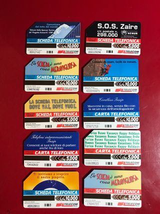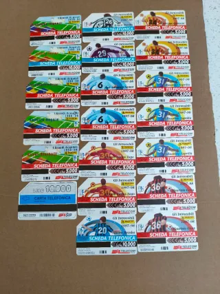 Ecco una descrizione che potrestVendo collezione di schede telefoniche degli anni 1990-2000. Ideali per collezionisti e appassionati, questi pezzi rappresentano un viaggio nel passato e sono perfetti per arricchire la tua collezione. **Dettagli principali:** - **Epoca:** Anni '90 e 2000 - **Condizioni:** Varie, da ottime a buone, alcune con segni di utilizzo