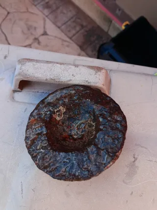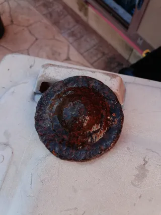 Tappo metallico di forma circolare, con segni del tempo che ne attestano l'antichità. - Materiale: Metallo - Forma: Circolare - Aspetto: Antico e da collezione