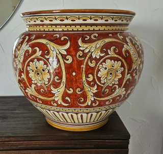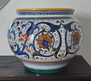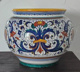 Splendido coprivaso in ceramica di Deruta, interamente decorato a mano. Ubaldo Grazia maioliche Collezione "Ricco Deruta" Diametro cm 40 Prezzo da rivenditore € 416,00