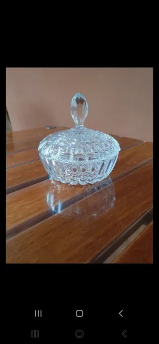 Portacaramelle, svuotatasche in cristallo trasparente Include coperchio con pomello, altezza tot. 15cm diametro 15cm. Volendo, per aggiungere un tocco di classe alla tua tavola, se si inseriscono all'interno delle lucine a led con batteria, si trasforma in un elegante centrotavola con affascinante effetto luminoso, ottima idea x le prossime feste Natalizie😉.(vedi photo) Design vintage con decorazioni elaborate, nuovo.