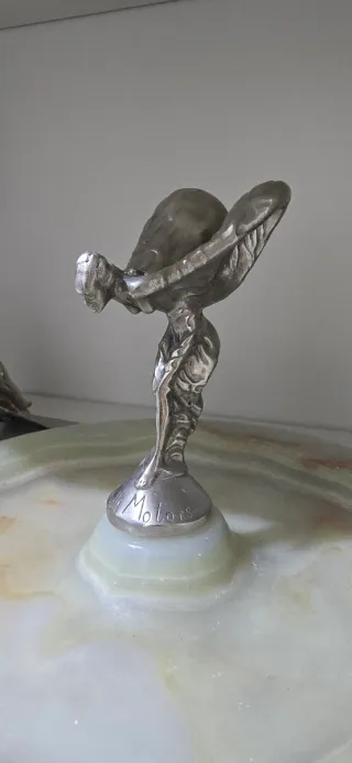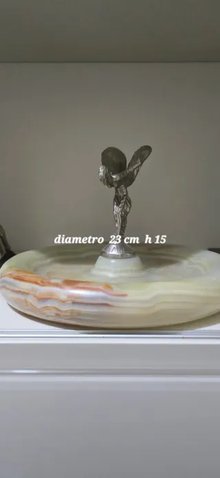 Elegante svuota tasche a forma della celebre Spirit of Ecstasy di Rolls Royce, posizionato su un piatto in onice. - Diametro: 23 cm - Altezza: 15 cm - Materiale piatto: Onice