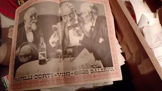 Manifesto pubblicitario d'epoca per Fratelli Corti Vini. Anni 65/70 - Illustrazione di tre uomini con bicchieri di vino e una bottiglia. - Testo FRATELLI CORTI - VINI - 6828 BALERNA in basso.