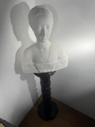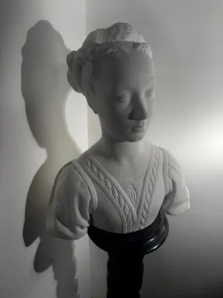 Busto in gesso raffigurante La Dama di Urbino. - Ritratto in gesso. Busto in gesso di La Dama di Urbino è un ritratto a mezzobusto, qui in copia da calco al vero in gesso alabastrino. La scultura a tuttotondo è stata modellata nel marmo verso la metà del ‘400, attribuita storicamente allo scultore toscano Desiderio da Settignano. La scultura a tuttotondo è stata modellata nel marmo verso la metà del ‘400. L’opera originale è conservata presso i Musei Statali di Berlino. Busto misure 50x50x15 cm. Oggetto da collezione raro ed introvabile. Seguiteci sui nostri canali social:@alexdesignmilano.