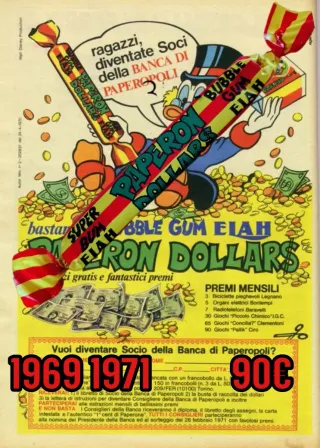 VintageFood Chewing gum "Paperon Dollars" un vero cult degli anni 70. Confezione originale, perfettamente sigillata e con i colori della carta ancora vivaci (come da foto). Queste gomme erano celebri perché all'interno contenevano le iconiche banconote di carta di Paperon de' Paperoni o dei trasferelli da collezione. Dettagli dell'oggetto: Condizioni: Sigillata, fondo di magazzino in ottimo stato. ⚠️ AVVISO IMPORTANTE PER IL COLLEZIONISTA: Trattandosi di un oggetto alimentare vintage con oltre 50 anni di età, la gomma viene venduta ESCLUSIVAMENTE a scopo collezionistico ed espositivo. NON ADATTA AL CONSUMO ALIMENTARE.