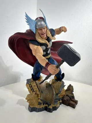 Statua di Thor, personaggio Marvel, realizzata in resina plastica. - Dettagli accurati del personaggio. - Base scenica inclusa. Figure in resina plastica Marvel Thor. Originale e con la sua confezione. Oggetto fuori produzione. Misure 26x20x12 cm circa. Oggetto da collezione taro ed introvabile. Seguiteci sui nostri canali social:@alexdesignmilano.