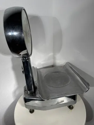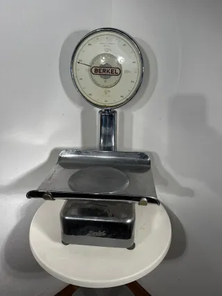Bilancia vintage Berkel, un pezzo da collezione in acciaio. Perfetta per aggiungere un tocco retrò alla tua casa o attività. - Materiale: Acciaio - Marca: Berkel - Design: Classico da banco - Quadrante: Circolare con indicazioni in kg Bilancia da collezione BERKEL materiale in acciaio con frontale Bifacciale in vetro. Portata 5 kg. Misure 75x40x45 cm circa. Seguici sui nostri social: @alexdesignmilano