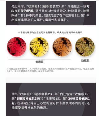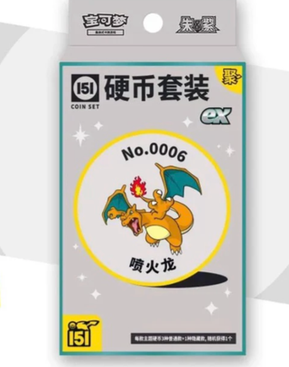 Set di monete da collezione Pokemon 151 Gathering. - Design EX. - Moneta Charizard (喷火龙). - Numero di serie: No.0006. - Include 3 monete a tema standard + 1 moneta nascosta casuale.