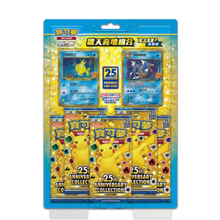Set speciale Pokémon per il 25° anniversario. - Include carte speciali Shining Magikarp e Dark Gyarados. - Contiene 5 bustine di espansione Pokémon. - Edizione Heaven and Earth Combination (歡天喜地組合). - Prodotto ufficiale Pokémon.