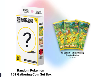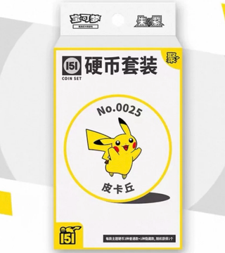 Set di monete da collezione Pokemon 151. - Tema: Pikachu. - Edizione cinese. - Include 3 monete comuni e 1 moneta rara per set.