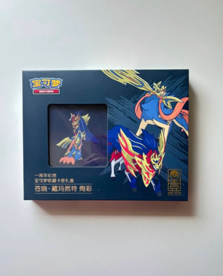 Box Un Anno di Pokémon con Zacian e Zamazenta. - Edizione speciale per il primo anniversario. - Illustrazioni esclusive di Zacian e Zamazenta. - Testo in cinese.
