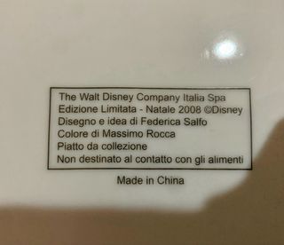 Piatto da collezione Disney a tema natalizio, edizione 2008. - Raffigura Campanellino (Tinkerbell) vicino a una candela e un albero di Natale. - Decorato con ornamenti e luci festive. - Scritta Buon Natale 2008 dorata sul bordo. - confezione originale non disponibile