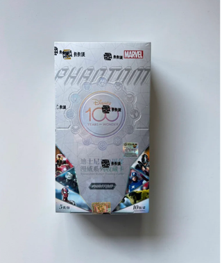 Scatola display di carte da collezione Marvel Phantom Kakawow 2023. - Edizione 100 Years of Wonder Disney. - Include 10 buste per scatola. - Ogni busta contiene 5 carte.