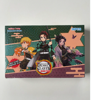 Scatola display per carte Demon Slayer 1Y Green, sigillata. Contiene 36 pezzi. - Design Mugen Train. - Illustrazioni dei personaggi principali.