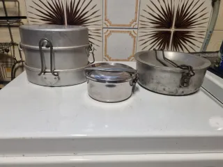 Gavetta porta pranzo militare schiscetta Quello piu grande è del militare, gli altri due non lo so . Tutti a 60€ Vendita anche singolarmente Militare: 45€ Media 20€ Piccola 5€