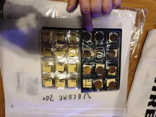 Lotto di francobolli della Bulgaria, riferimento 72. - Francobolli con dettagli dorati. - Etichetta con Bulgaria Nuovi e numero 72.