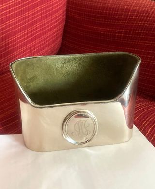 Elegante portalettere in argento 800, con finitura lucida e un design classico in stile inglese. Presenta un medaglione ovale inciso con iniziali. E' un regalo di una zia per la mia Prima Comunione. Correva l'anno 1955, quindi sicuramente non è posteriore a quella data. E' in ottime condizioni, anche considerata l'età. Per i più esigenti, potrebbe necessitare di una pulizia di fino effettuata da mani esperte, soprattutto lungo i bordi. Dimensioni 17,5 (l) x 13 (h) x 6 (p) Peso 315 g ca compreso il rivestimento interno. - Materiale: Argento 800 - Finitura: Lucida - Stile: Inglese - Dettaglio: Medaglione inciso con iniziali