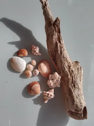 Vendo composizione naturale per acquario,composta da legno e conchiglie varie e un fossile.