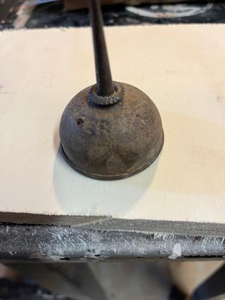 Piccola oliera vintage Singer in metallo arrugginito. - Marchio Singer inciso sul corpo. - Beccuccio sottile per un'applicazione precisa.