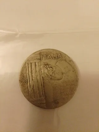 Moneta da 10 centesimi di Lire Italiane, coniata nel 1942. - Dritto: Figura femminile con fascio littorio e spiga di grano. - Rovescio: Fascio littorio con scudo. - Anno: 1942 - Valore: 10 Centesimi