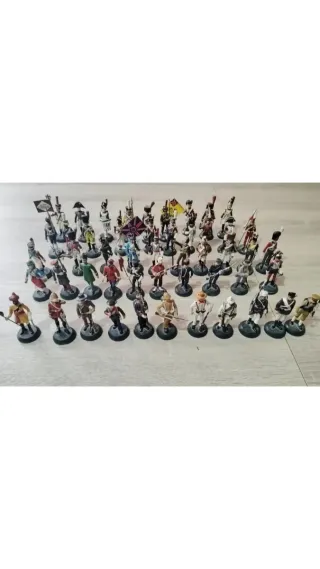 Collezione di figure di soldatini di piombo, 30 figurine, ciascuna con base. 130€ il lotto, 10€ unità singola. Figure dettagliate. Varietà di uniformi e pose. Ideali per collezionisti.