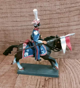 Bellissimo soldatino di piombo a cavallo, raffigurante un Polish Lancer. - Dettagli accurati sulla divisa e sull'equipaggiamento. - Cavallo in posa dinamica.