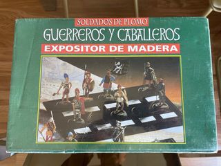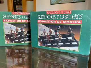 Due espositori in legno per soldatini di piombo. Design di guerrieri e cavalieri. Includono espositori in legno.