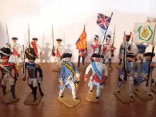 Set di 17 figure di soldatini di piombo della marca Almirall Palou. Figure dettagliate di soldati storici. Include un tamburino e un alfiere. Ideale per collezionisti. Ogni soldatino ha un manuale esplicativo.