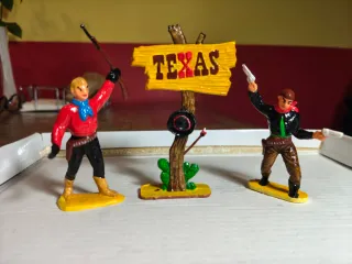 SPEDIZIONE SOLO CORREOS WALLAPOP GLS E INPOST NO, Lotto di figure di soldatini in plastica stile western, perfette per collezionisti. - Figure di cowboy ed elementi del west. - Include cartello TEXAS e cactus. Ideale per diorami e giochi.