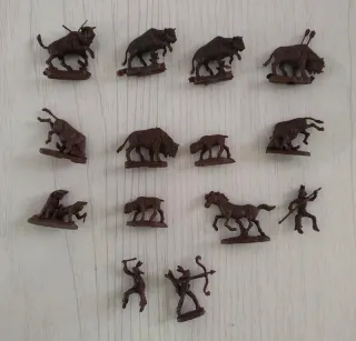 Lotto 14 soldatini in plastica Atlantic 1/72 H0 *Caccia al Bisonte" Completa! - Marca: Atlantic. - Scala: 1/72 H0. No Box!