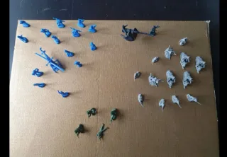 LOTTO di 20 soldatini + 1 Carro Armato + 1 Bandiera + 1 Staccionata di filo Spinato , misurano circa 5/6 cm. le condizioni sono quelle delle foto visti e piaciuti .