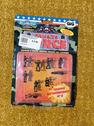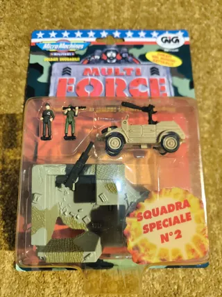 Set di soldatini snodabili Micro Machines Multi Force. - Personaggi militari dettagliati. - Include veicolo e accessori. - Adatto per collezionisti.