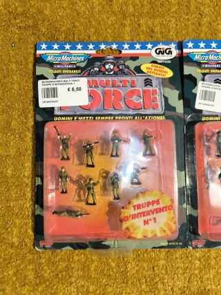 Set di soldatini Micro Machines Multi Force. - Due confezioni sigillate. - Modelli assortiti di soldatini e mezzi. - Truppe d'Intervento N°1 e Truppe d'Intervento N°2.