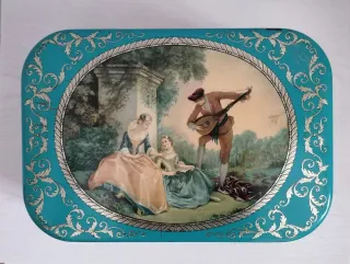 Elegante scatola in latta vintage con una bellissima decorazione. Conteneva caramelle Giulio Pagliarini Misure: cm 35x24x9,50