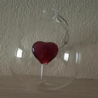 Deliziosa pallina in vetro trasparente con un cuore rosso al suo interno. Perfetta come decorazione. - Materiale: Vetro - Colore: Trasparente con cuore rosso - Design: Sfera con cuore
