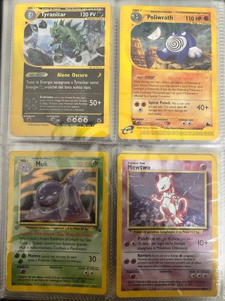 Lotto di carte Pokémon vintage, le condizioni variano dal poor all ex/nm. il prezzo è ribassato se comprate tutte insieme altrimenti per carte singole minimi card market. per ulteriori foto o info sono disponibile - Tyranitar FASE 2, 120 PV - Poliwrath STAGE 2, 110 HP - Muk FASE 1, 70 PV - Mewtwo Pokémon Base, 60 PV