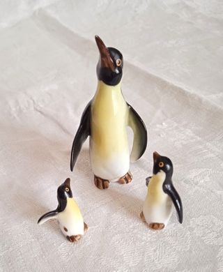 Set di statuine, miniature, in porcellana - Bone China, famiglia di Pinguini, composta da tre componenti. Epoca anni '60. Utilizzabile sia per esposizione o collezioni, che, come segnaposto per la tavola. Condizioni generali perfette. Dimensioni: Mamma altezza circa 8 cm; Piccoli 1 - circa 3,4 cm; 2 - 2,8 cm.