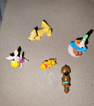 Set di 5 statuine dei personaggi Disney. - Personaggi inclusi: Pluto, Pippo, Winnie the Pooh, Pimpi e Scooby-Doo. - Ideali per collezionisti o come decorazione.