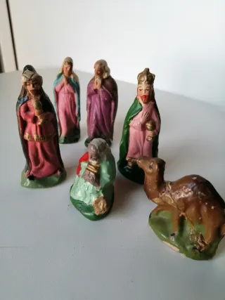 Lotto di 6 statuine per presepe realizzate in terracotta, dipinte a mano (Giuseppe, Maria, Re Magi e cammello) altezza cm 6-9 Tenutebenissimo - Pezzi unici per arricchire il tuo presepe. - Materiale: terracotta. - Stile: vintage.