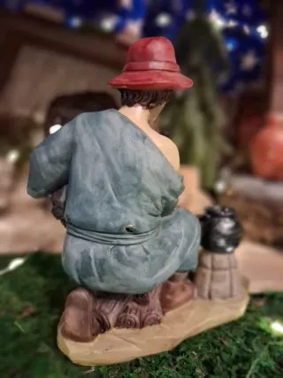 Statuina artigianale per presepe. Rappresenta un uomo seduto con meloni. Dettaglio dei meloni in una ciotola. Abbigliamento tradizionale. Misura 9,5 cm (le figure del presepe sono alte 12 cm). Una mano è scheggiata, ma è incollata e quasi impercettibile. Possibilità di consegna a mano a Toledo. Altre statuine disponibili nel mio profilo (posso fare pacchetti).
